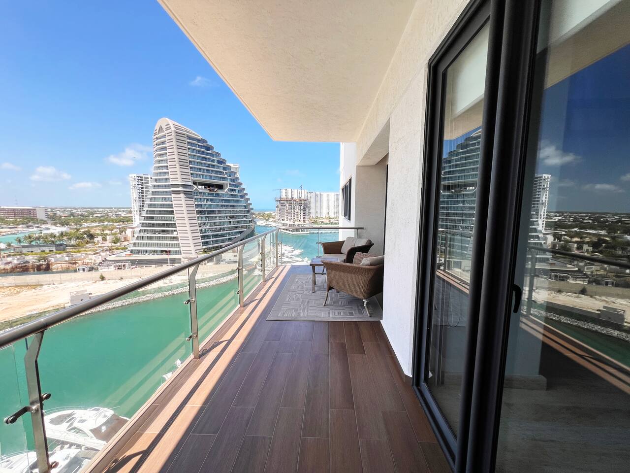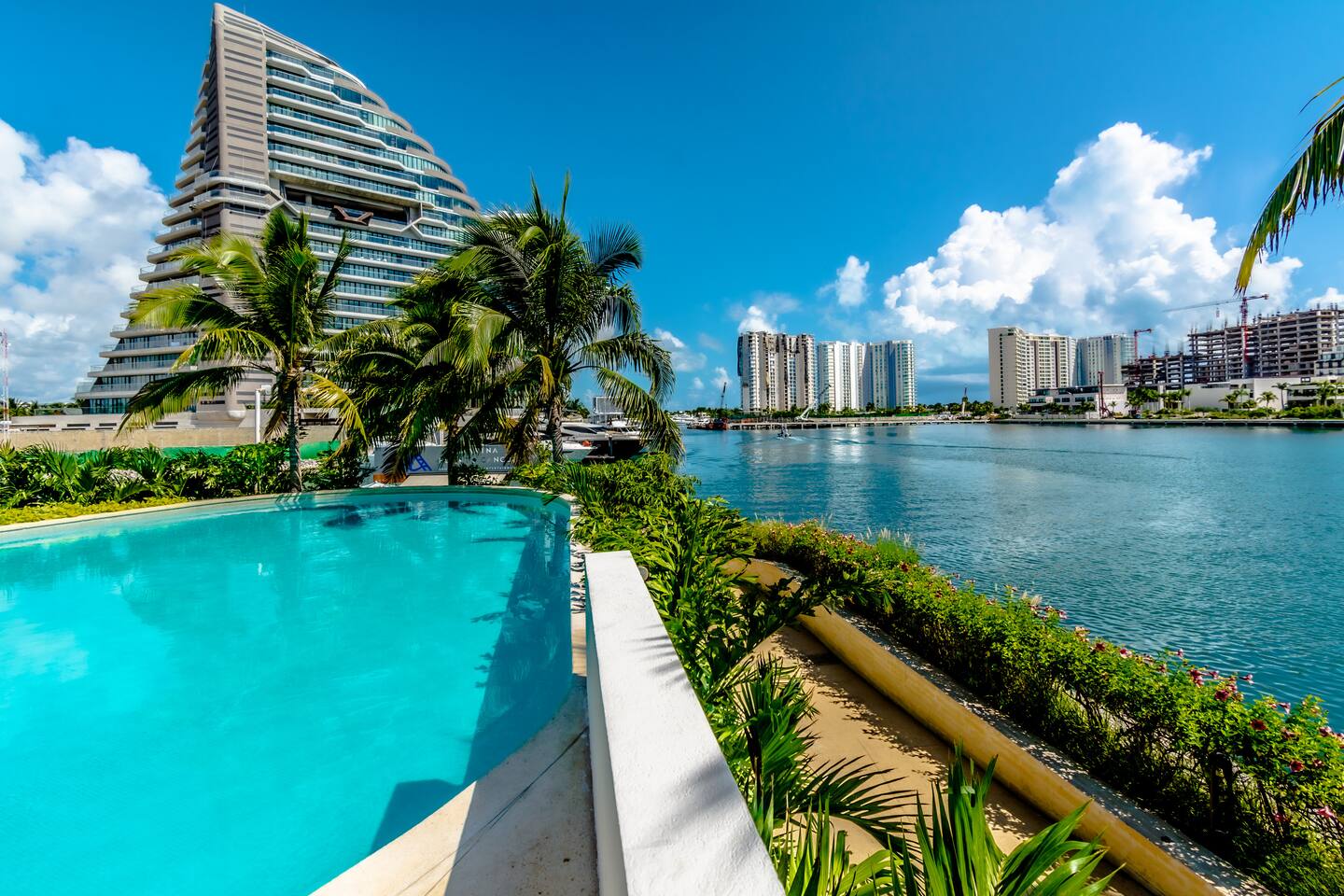 Es la zona más exclusiva de la zona hotelera de Cancún, Puerto Cancún. Espectaculares vistas al canal, marina y yates, para 4 personas, acceso a las amenidades del edificio, como son, 2 piscinas climatizadas, cancha de pádel, gimnasio y acceso al muelle, único condominio con acceso directo a la plaza comercial, cuenta con restaurantes, tiendas, cine y es pet friendly