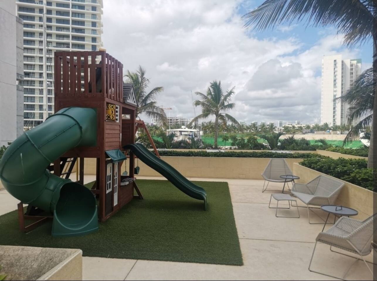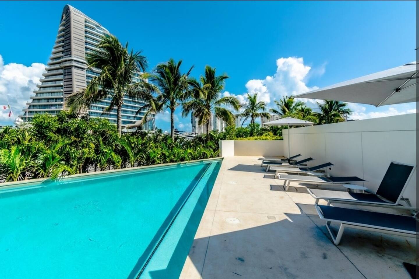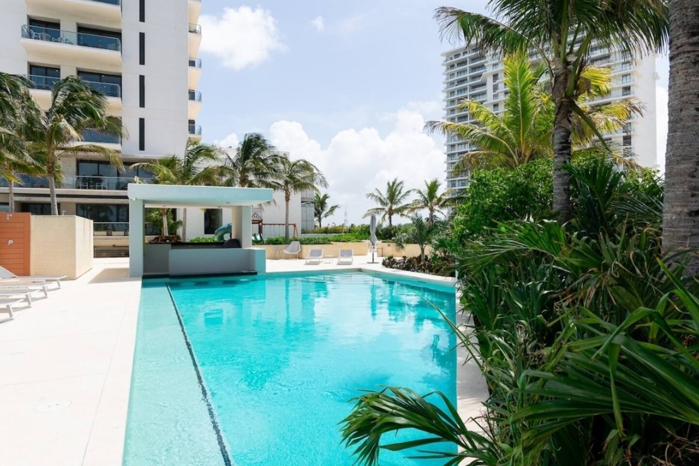Los huéspedes tienen acceso a todas las amenidades del condominio, como lo son el gimnasio (en el tercer piso), dos albercas climatizadas, área de juegos infantiles, asador, cancha de Padel, acceso directo a la Plaza Marina Puerto Cancun, acceso al muelle para que los recojan yates o barcos de pesca.