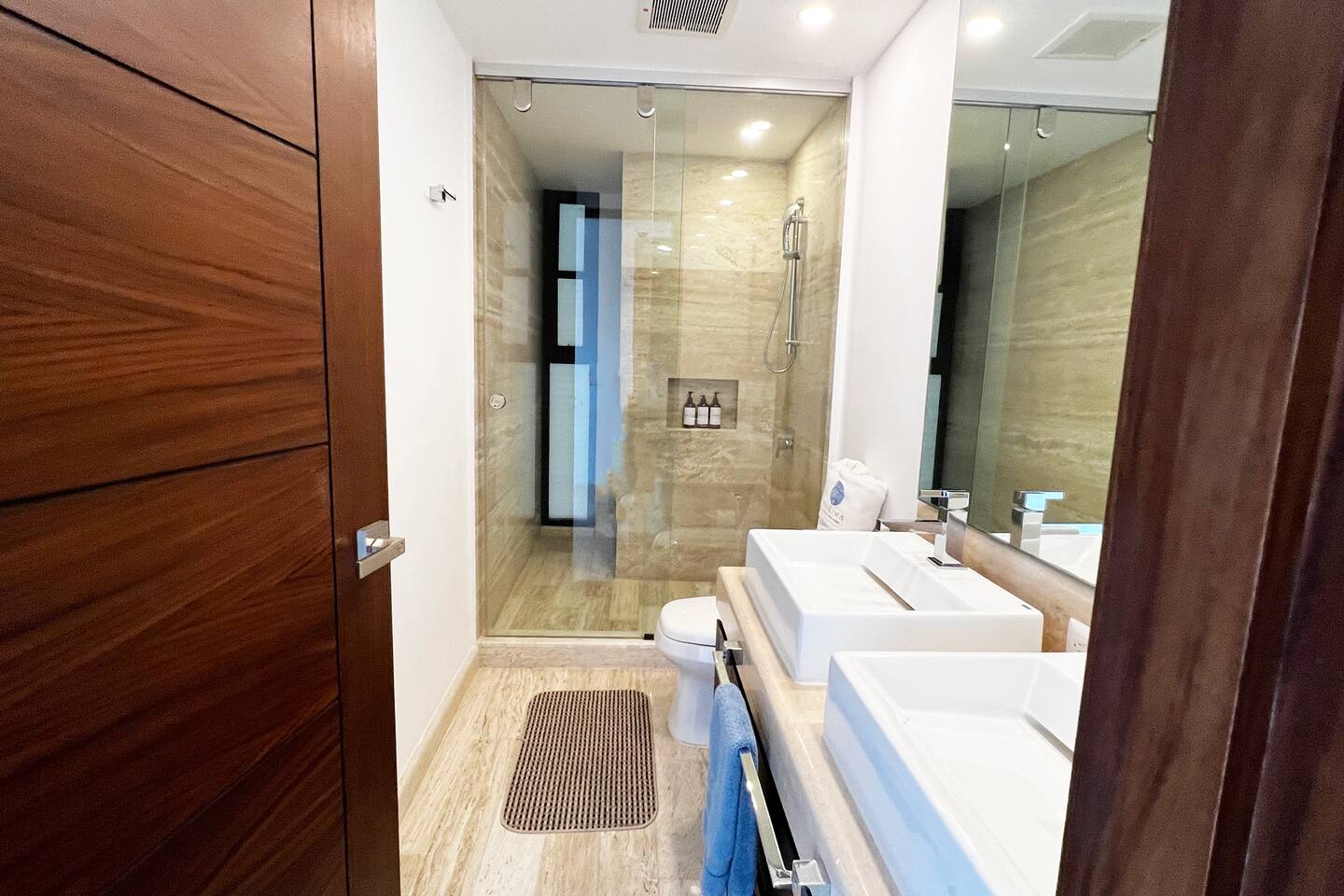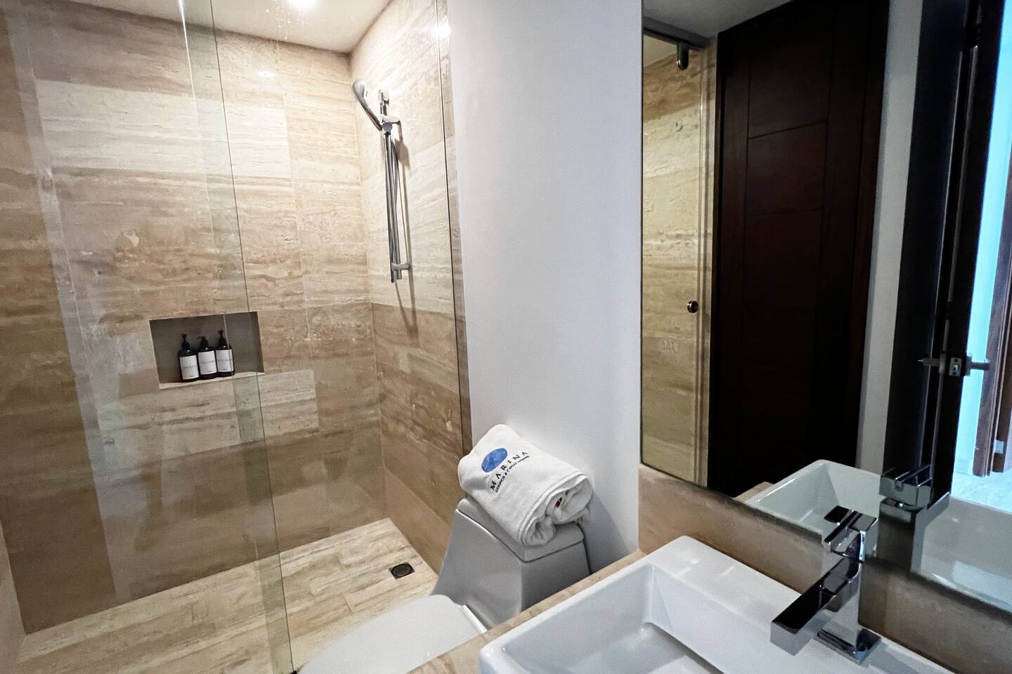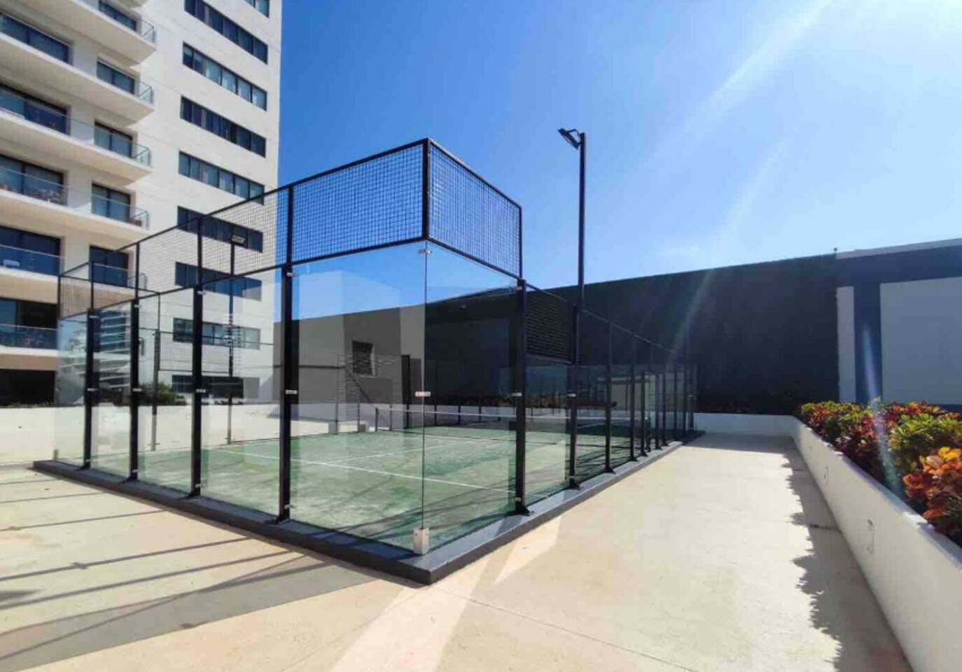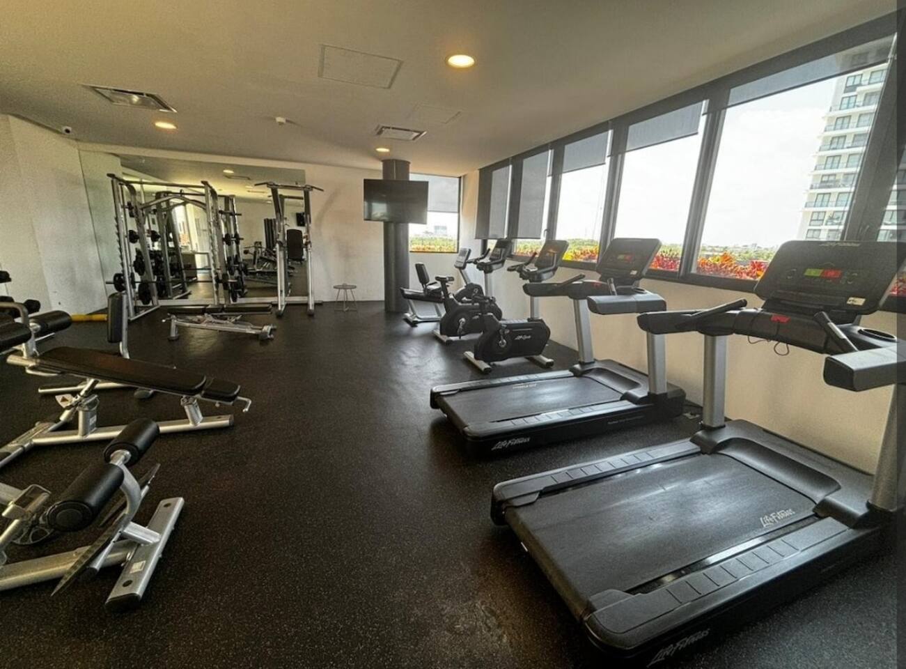Los huéspedes tienen acceso a todas las amenidades del condominio, como lo son el gimnasio (en el tercer piso), dos albercas climatizadas, área de juegos infantiles, asador, cancha de Padel, acceso directo a la Plaza Marina Puerto Cancun, acceso al muelle para que los recojan yates o barcos de pesca.