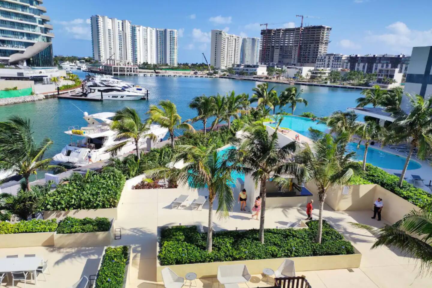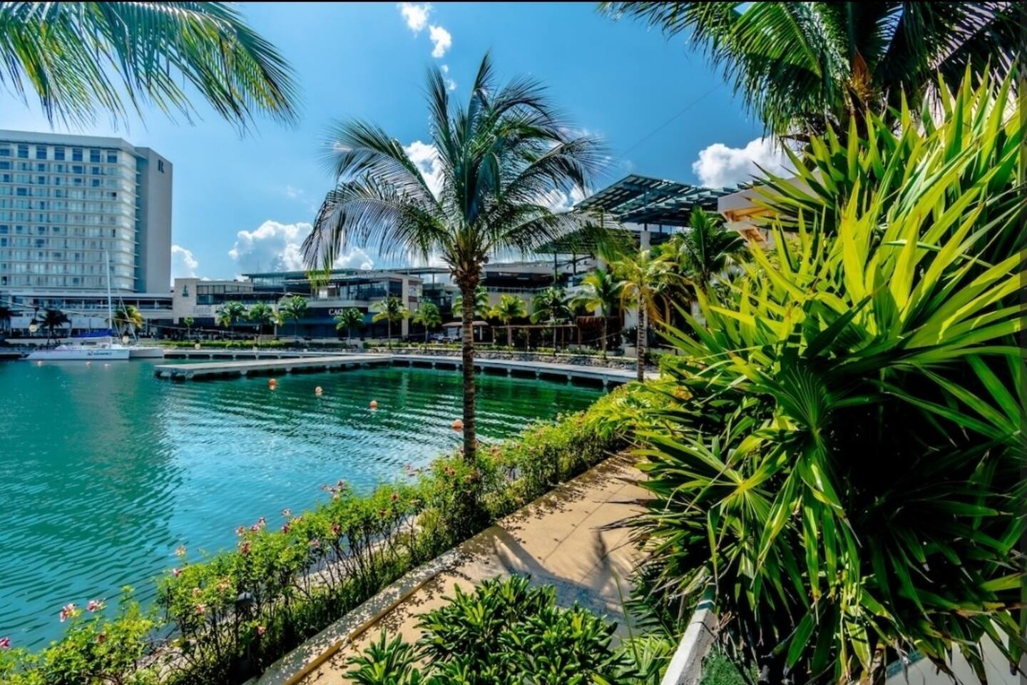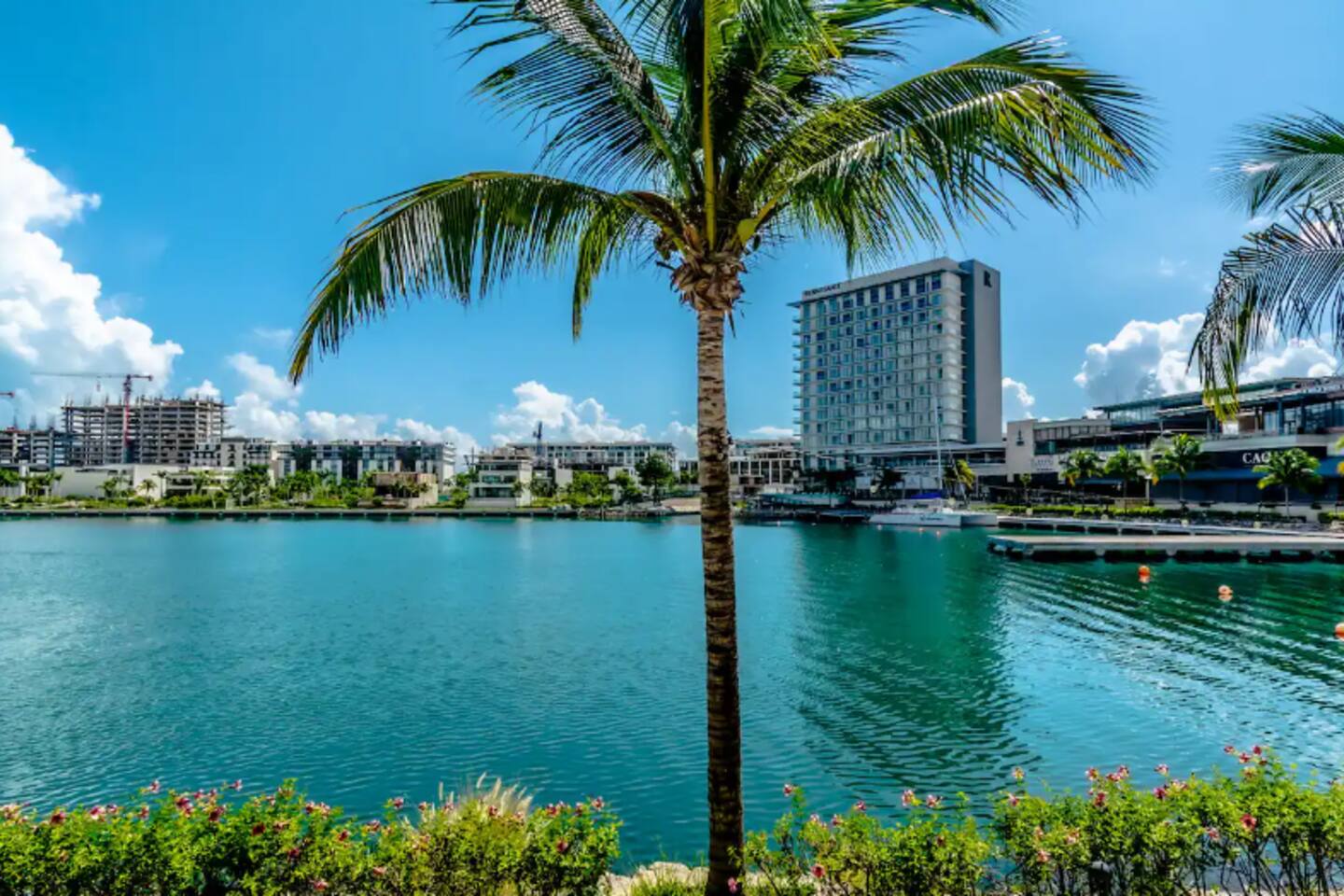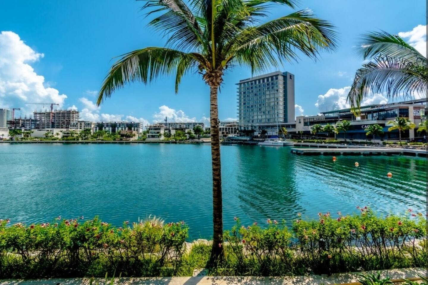 Ubicado en la zona más exclusiva de la zona hotelera de Cancún, Puerto Cancún, este hermoso departamento para 4 personas ofrece espectaculares vistas al canal, marina y yates. Disfruta de la terraza y de las comodidades del edificio: 2 piscinas climatizadas, cancha de pádel, gimnasio y acceso al muelle. Es el único condominio con acceso directo a la plaza comercial, que cuenta con restaurantes, tiendas, cine y es pet friendly.