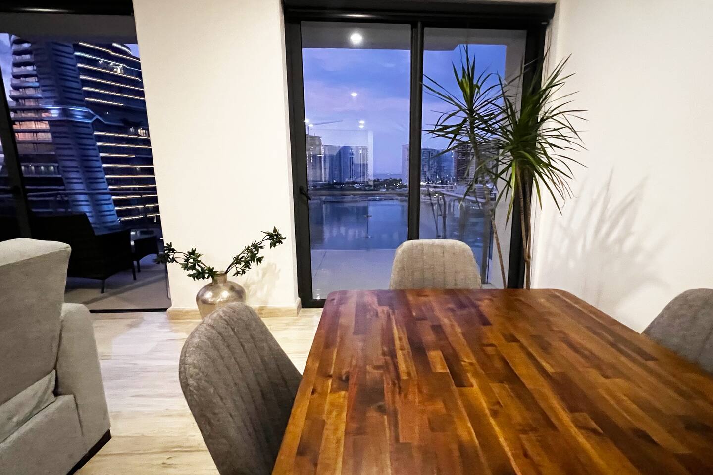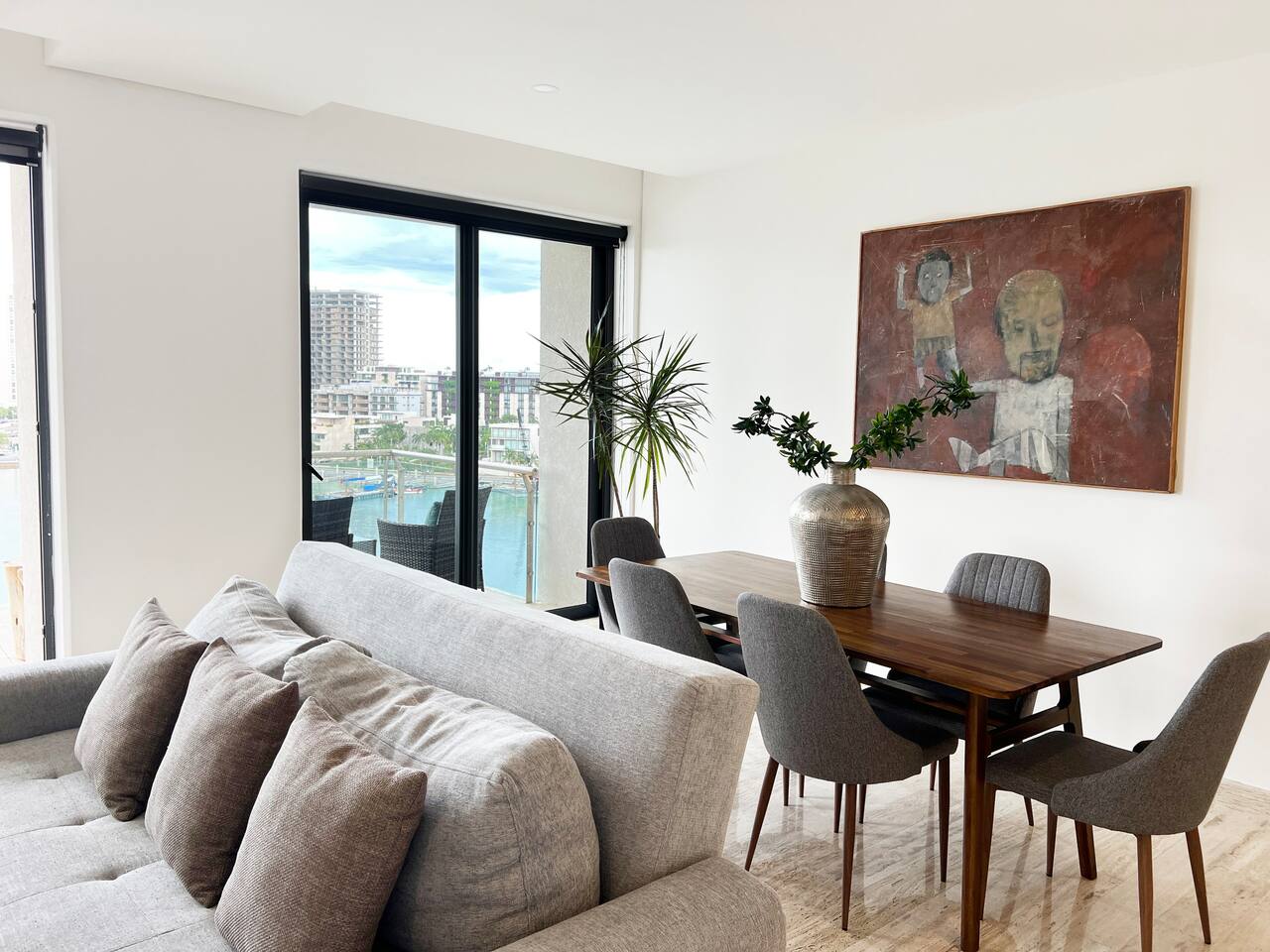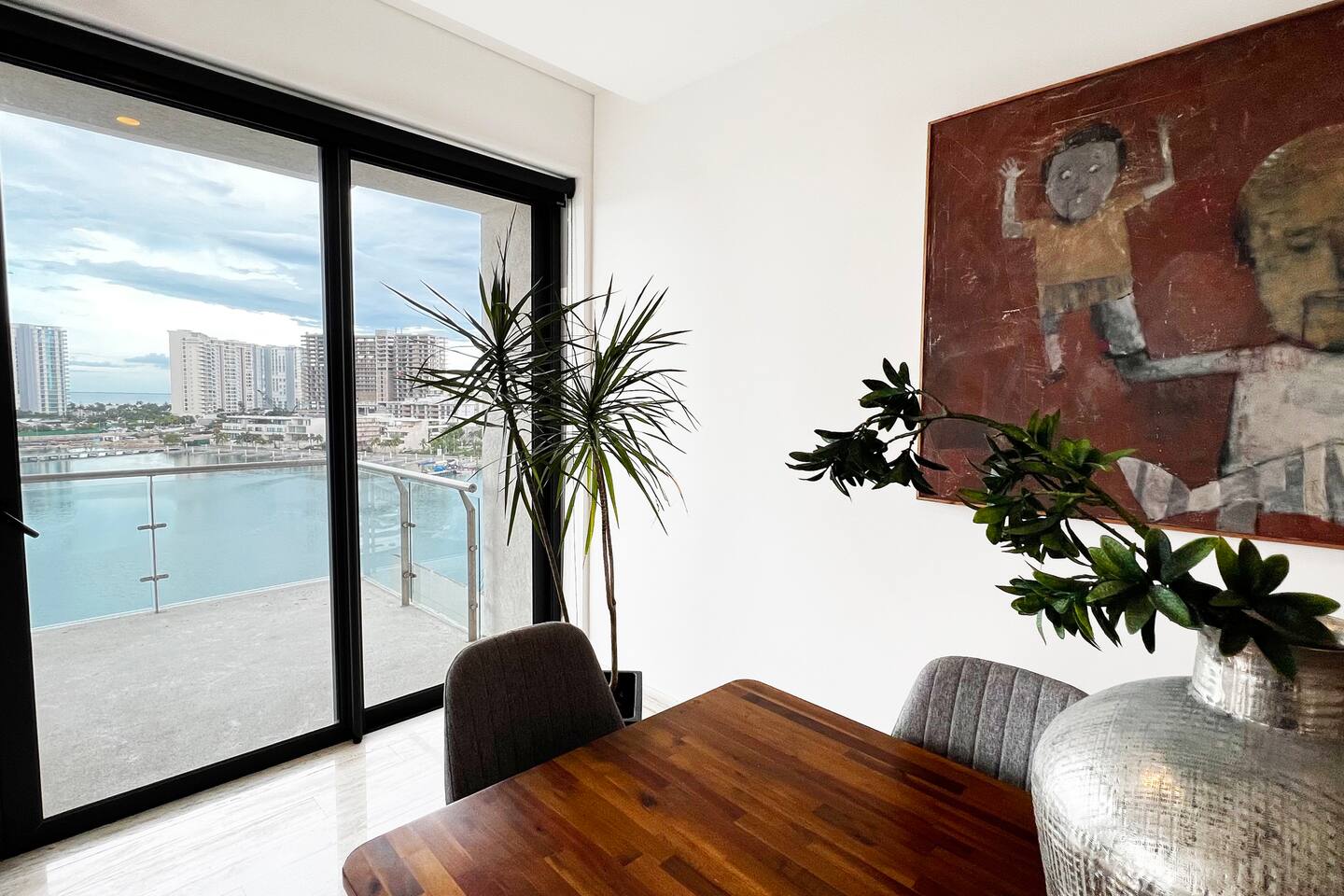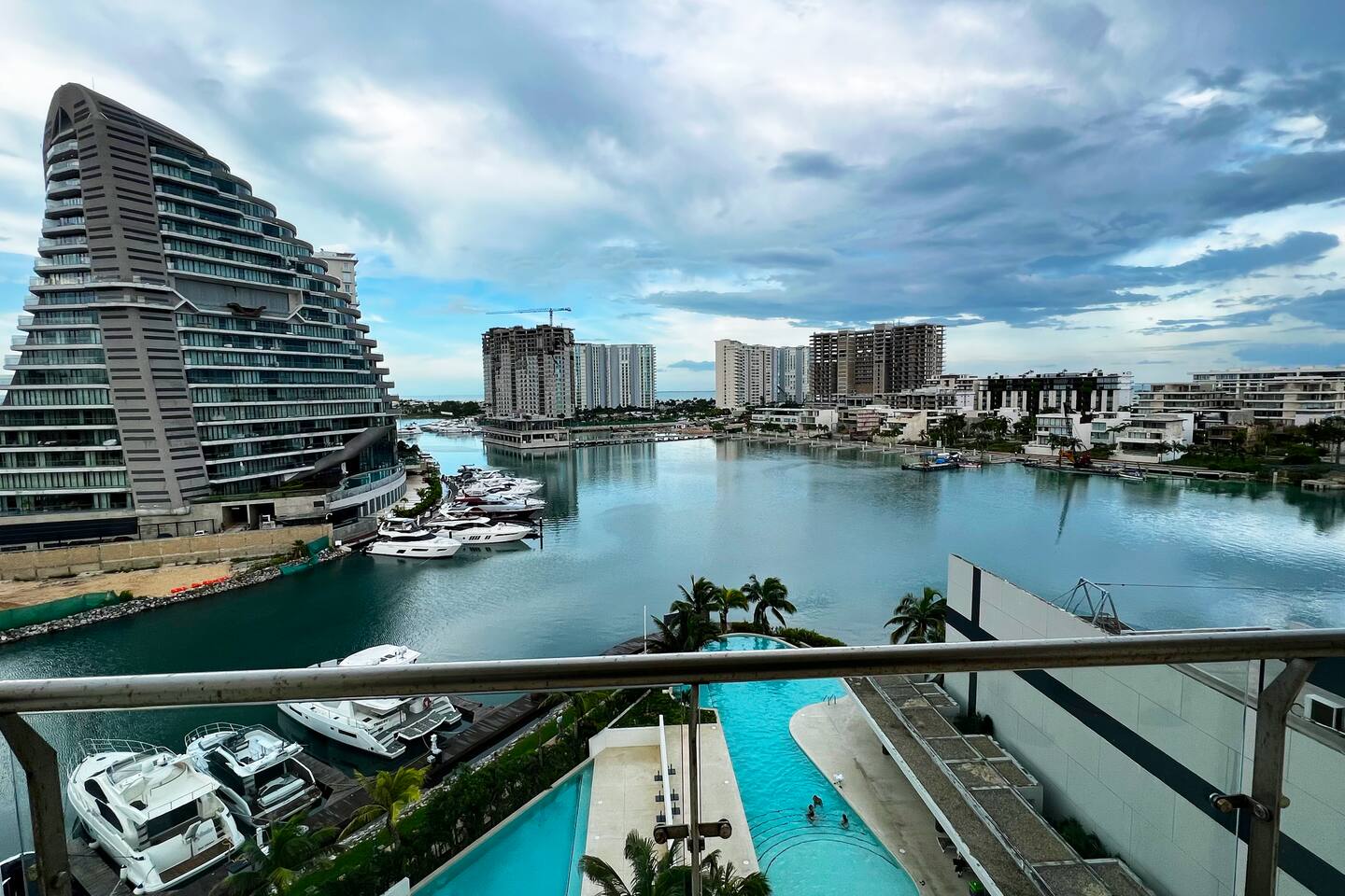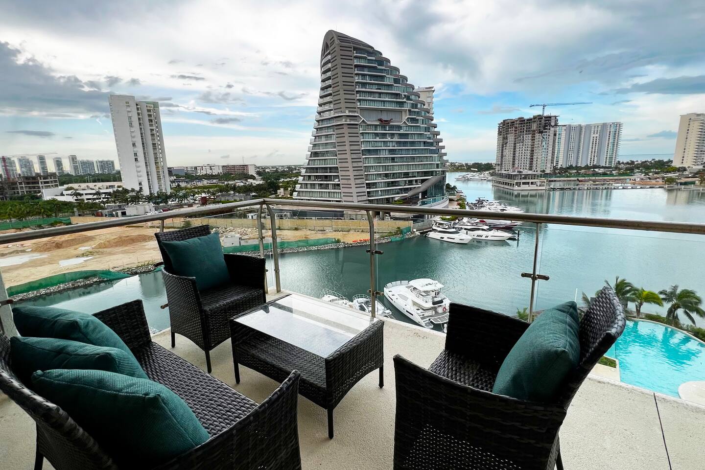 Ubicado en la zona más exclusiva de la zona hotelera de Cancún, Puerto Cancún, este hermoso departamento para 4 personas ofrece espectaculares vistas al canal, marina y yates. Disfruta de la terraza y de las comodidades del edificio: 2 piscinas climatizadas, cancha de pádel, gimnasio y acceso al muelle. Es el único condominio con acceso directo a la plaza comercial, que cuenta con restaurantes, tiendas, cine y es pet friendly.