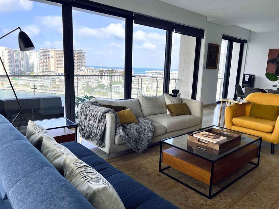 Un oasis de estilo y confort en Puerto Cancun! Este espacioso departamento te sorprenderá con su elegancia y vistas panorámicas al mar. Rodeado de arte y diseño mientras disfrutas de todas las comodidades que necesitas para unas vacaciones inolvidables. Además, su ubicación privilegiada, a solo unos pasos de la Marina de Puerto Cancún donde encontraras las mejores atracciones de la ciudad.