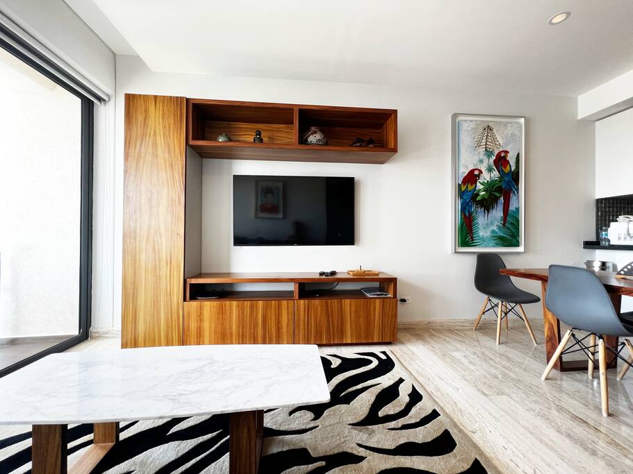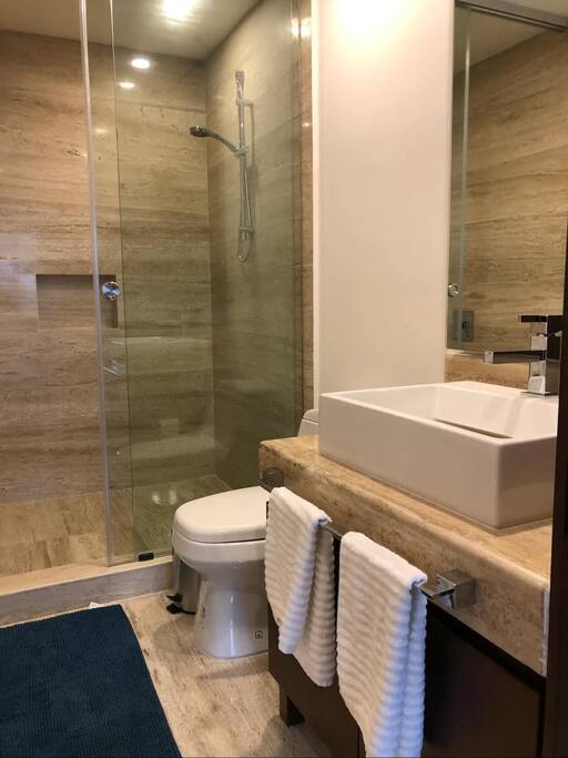 Condominio: Disfruta de dos albercas climatizadas, acceso directo a la plaza Marina Puerto Cancun . Estacionamiento techado sin costo dentro del condominio. Departamento: El departamento cuenta con entrada independiente (self check inn), se puede accesar a cualquier hora después de las 3pm. Al entrar se encuentra la cocina equipada con todo lo necesario para cocinar, un amplia zona de sala con sofa cama, el comedor para 4 personas, una terraza con vista al mar, canal, shark tower y los yates en puerto Cancún. La recamara tiene una cómoda cama King size y baño independiente con walk in closet. Cuenta con lavadora/secadora, cuarto de lavado, wifi de alta velocidad, espectacular balcon con vista a los yates y canal, programación de televisión con canales nacionales, internacionales, deportes, películas y series. Si tienes un invitado extra en tu alojamiento o bien si quieres mayor comodidad podemos agregar las siguientes opciones: -sofá cama individual -colchón Inflable Es importante que esta requerimiento lo hagas previamente para tener todo listo para cuando llegues a tu alojamiento.