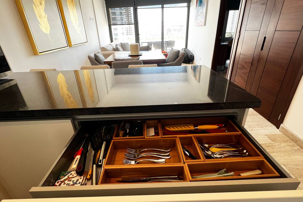 Condominio: Disfruta de dos albercas climatizadas, acceso directo a la plaza Marina Puerto Cancun. Estacionamiento techado sin costo dentro del condominio. Departamento: El departamento cuenta con entrada independiente (self check inn), se puede accesar a cualquier hora después de las 3pm. Al entrar se encuentra la cocina equipada con todo lo necesario para cocinar, un amplia zona de sala con sofa cama, el comedor para 4 personas, una terraza con vista al mar, canal, shark tower y los yates en puerto Cancún. La recamara tiene una cómoda cama King size y baño independiente con walk in closet. Cuenta con lavadora/secadora, cuarto de lavado, wifi de alta velocidad, espectacular balcon con vista a los yates y canal, programación de televisión con canales nacionales, internacionales, deportes, películas y series. Si tienes un invitado extra en tu alojamiento o bien si quieres mayor comodidad podemos agregar las siguientes opciones: -sofá cama individual -colchón Inflable Es importante que esta requerimiento lo hagas previamente para tener todo listo para cuando llegues a tu alojam