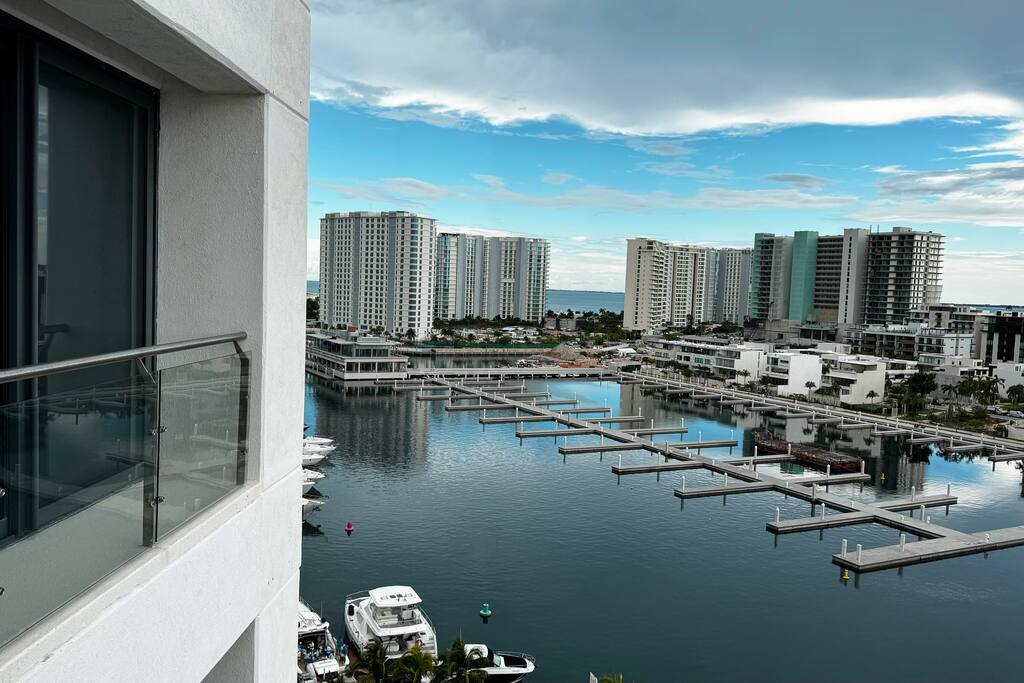 Es la zona más exclusiva de la zona hotelera de Cancún, Puerto Cancún. Disfruta de espectaculares vistas a la marina, acondicionado para 6 personas, acceso a las amenidades del edificio, como son, 2 piscinas climatizadas, cancha de pádel, gimnasio y acceso al muelle para que te recojan barcos Es el único condominio con acceso directo a la plaza comercial, cuenta con restaurantes, tiendas, cine y se aceptan mascotas.