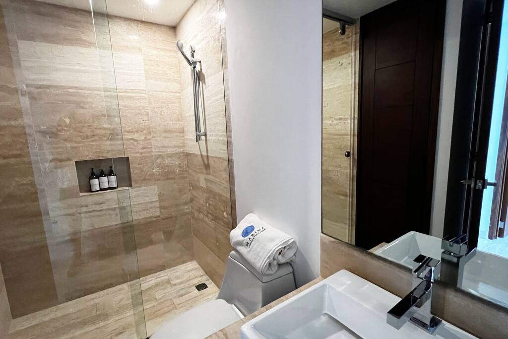 Ubicado en la zona más exclusiva de la zona hotelera de Cancún, Puerto Cancún, este hermoso departamento para 4 personas ofrece espectaculares vistas al canal, marina y yates. Disfruta de la terraza y de las comodidades del edificio: 2 piscinas climatizadas, cancha de pádel, gimnasio y acceso al muelle. Es el único condominio con acceso directo a la plaza comercial, que cuenta con restaurantes, tiendas, cine y es pet friendly.