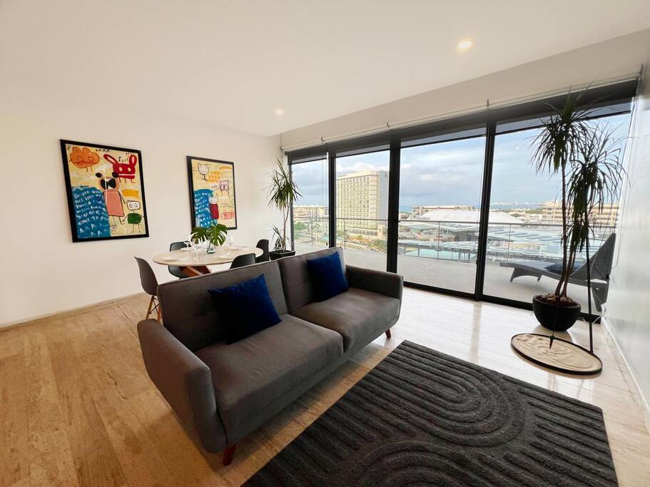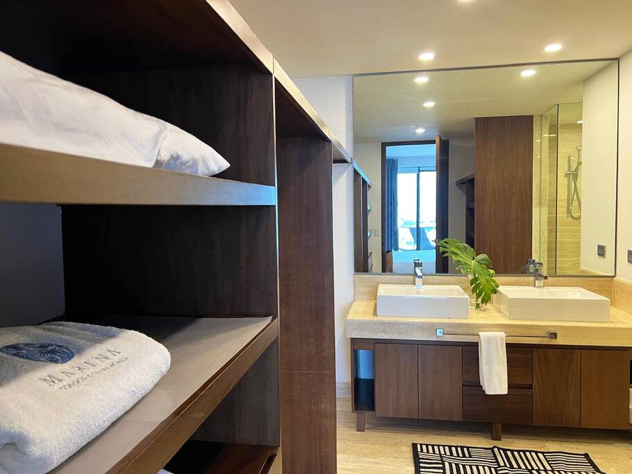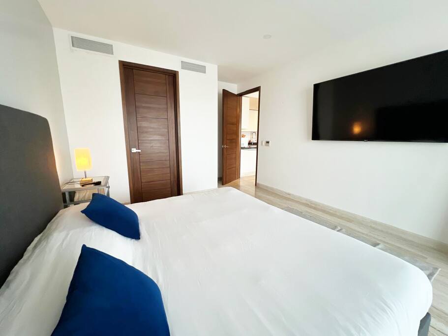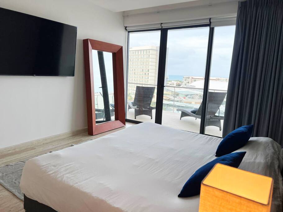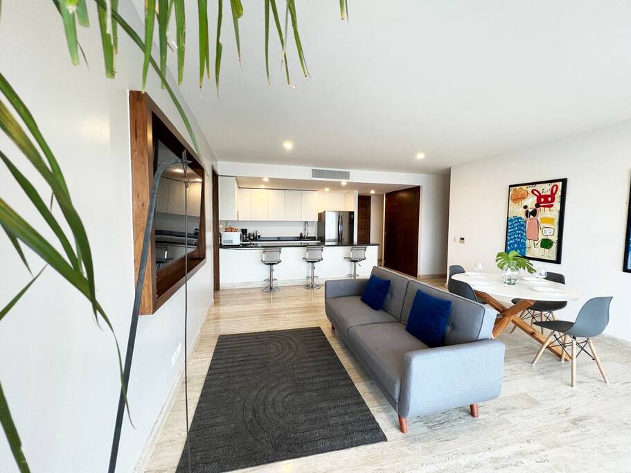Disfruta de este exclusivo departamento en Puerto Cancún con 2 recámaras amplias, cocina equipada, sala, comedor y un gran balcón con vistas espectaculares al mar y la marina. Cada habitación cuenta con baño privado, TV, wifi, cortinas blackout y caja de seguridad. A pasos de la playa, restaurantes, tiendas y paseo marítimo. Ideal para familias o parejas