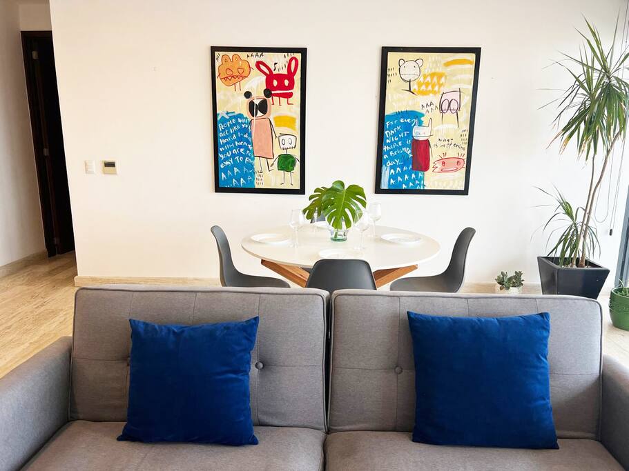 - Pet Friendly - Cafetera, Aire Acondicionado, toallas de alberca, hermosas sabanas blancas, wifi de alta velocidad. - Recomendaciones de restaurantes. - Contactos con empresas confiables para yates, catamarán o tours a las pirámides. Si tienes un invitado extra en tu alojamiento o bien si quieres mayor comodidad podemos agregar las siguientes opciones: -sofá cama individual -colchón Inflable Es importante que esta requerimiento lo hagas previamente para tener todo listo para cuando llegues a tu alojamiento.