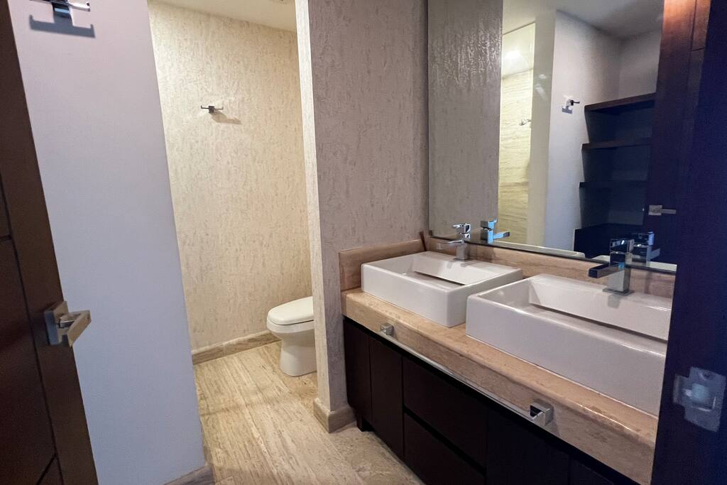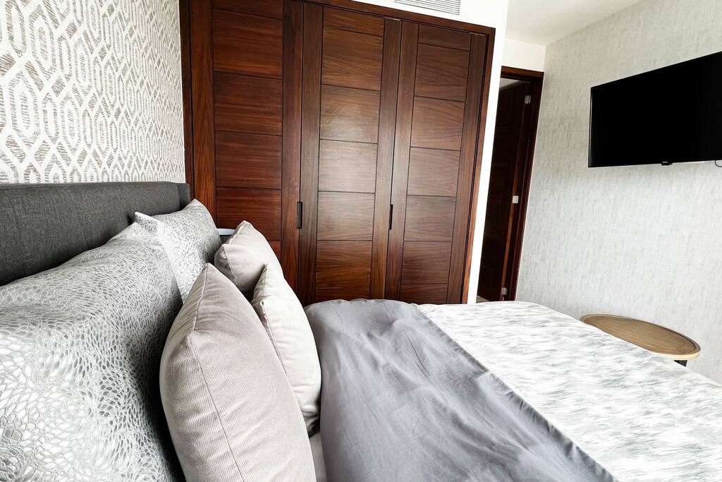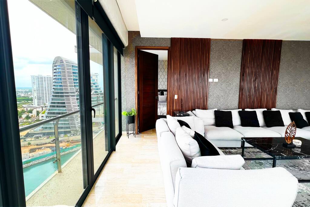 Disfruta del confort en cada rincón. La elegante sala con detalles de diseño es perfecta para relajarte o disfrutar en familia frente a la TV. Desde el balcón, contempla las impresionantes vistas al mar y la Torre Shark. La cocina cuenta con una moderna barra y todos los utensilios necesarios. Los acogedores cuartos ofrecen comodidad y estilo, mientras que los baños están equipados con todo lo esencial. Además, los amplios closets y la caja fuerte garantizan un alojamiento sin preocupaciones.