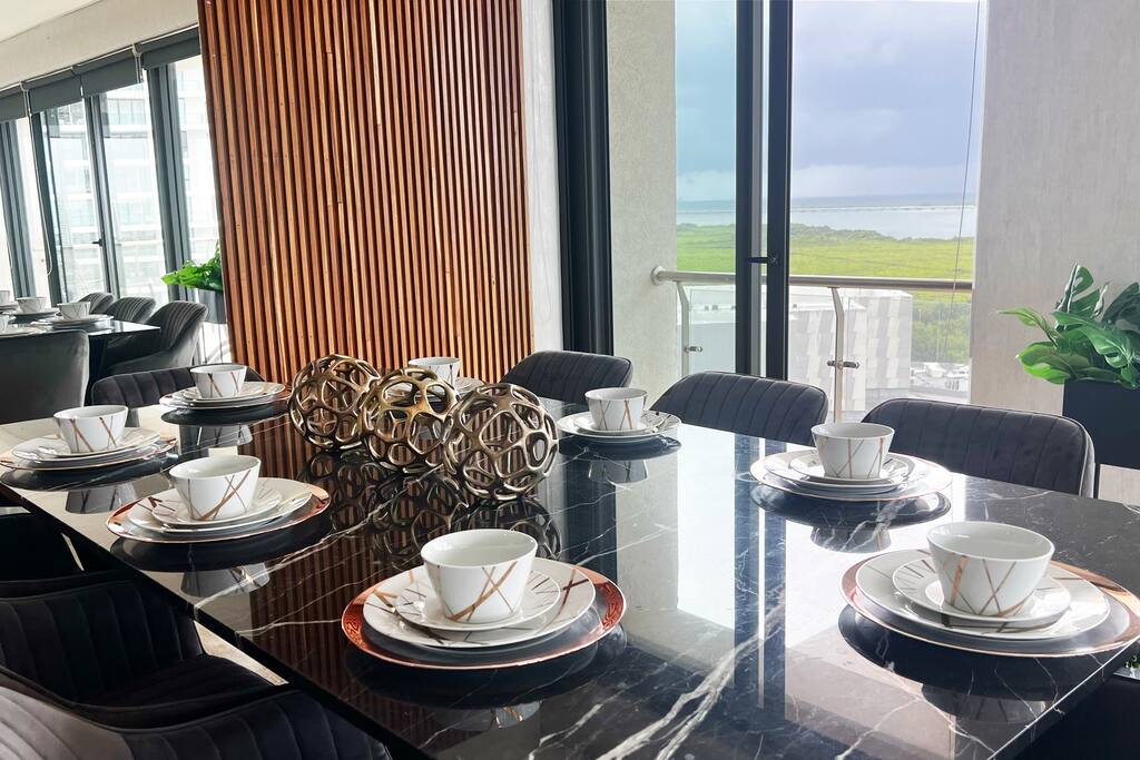 Un oasis de estilo y confort en Puerto Cancun! Este espacioso departamento te sorprenderá con su elegancia y vistas panorámicas al mar. Rodeado de arte y diseño mientras disfrutas de todas las comodidades que necesitas para unas vacaciones inolvidables. Además, su ubicación privilegiada, a solo unos pasos de la Marina de Puerto Cancún donde encontraras las mejores atracciones de la ciudad.